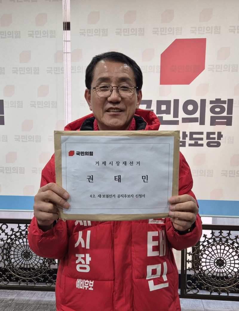 권태민 국민의힘 거제시장재선거 예비후보(이하 권 예비후보)가 4.2 재·보궐선거 국민의힘 경남도당 공천관리위원회에 공천신청서를 11일 오전에 접수했다고 밝혔다.