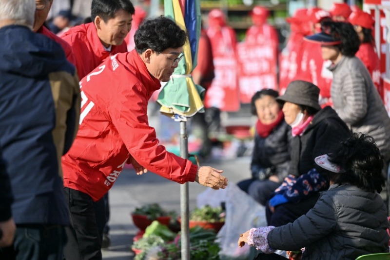 박환기 후보는 29일 주말 5일 장이 서는 거제면에서 장터를 찾은 동남부권 주민들의 지지를 확인하며 바닥 민심을 훑었다.