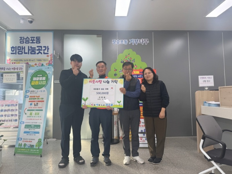 지난 12월 2일 지역 주민 신종범 씨는 장승포동 주민센터를 통해 이웃돕기 성금 50만 원을 기탁했다.