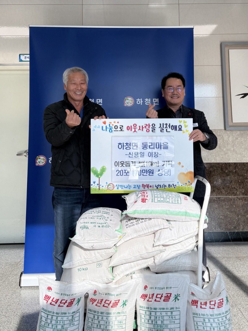 박원석 하청면장은 “이웃을 먼저 생각해주신 신용일 이장님께 깊이 감사드린다”며 “도움이 필요한 이웃에게 잘 전달하겠다”고 답했다.