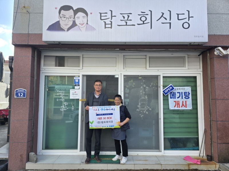 거제면 탑포회식당, 라면 30박스 기탁! 사랑의 손길 이어져