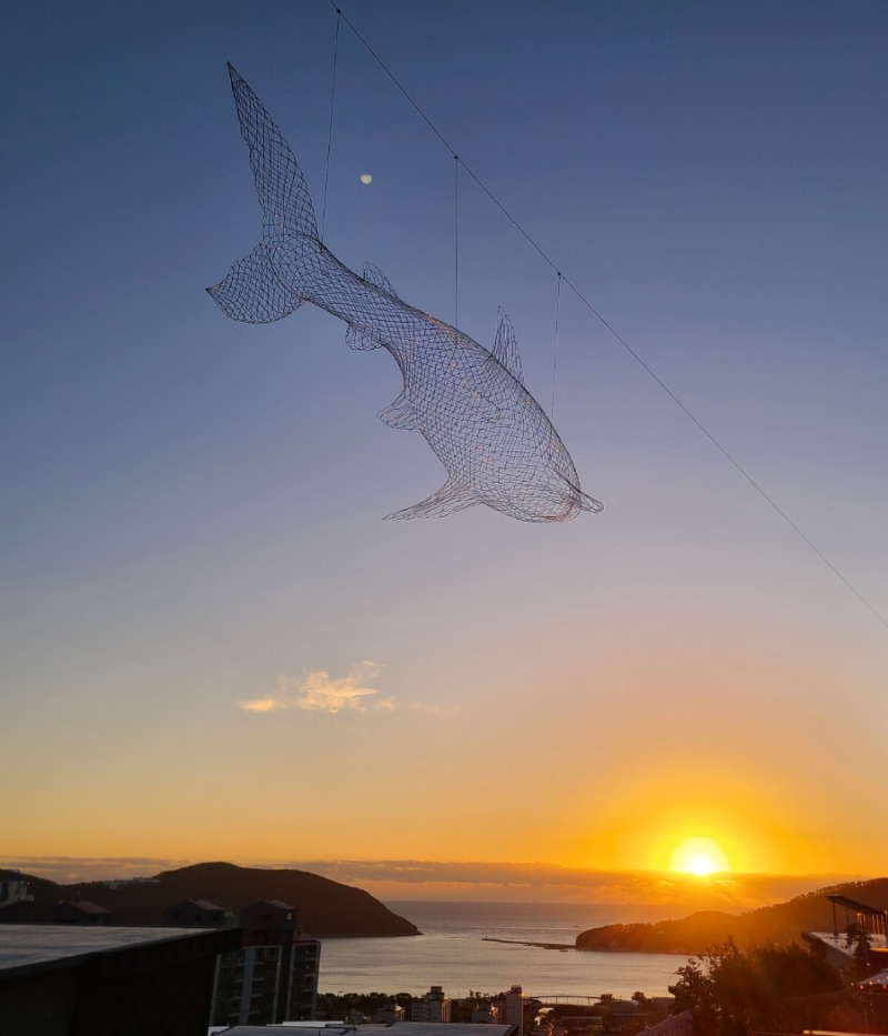 “존재의 부재적 거리” 미학 추구하는 홍익대 건축과, 서울대 조소과 나온 독특한 이력의 위세복 조각가는 빈센트 반 고흐 오마주한 작품으로 지름 3미터 ‘숲의 정령’ 작품을 삼나무에 메달았다. 거제도 유명 관광지인 학동 흑진주몽돌해변의 검은 몽돌처럼 조약돌로 조형 작업하는 조덕래 조각가도 초대했다. 인간이 미치지 못하는 돌의 시간성과 자연성의 세계에 기대어 자신의 존재를 증명하려는 아티스트는 ‘몽유도원도’ 전시에 흑마, 여인상 출품했다.