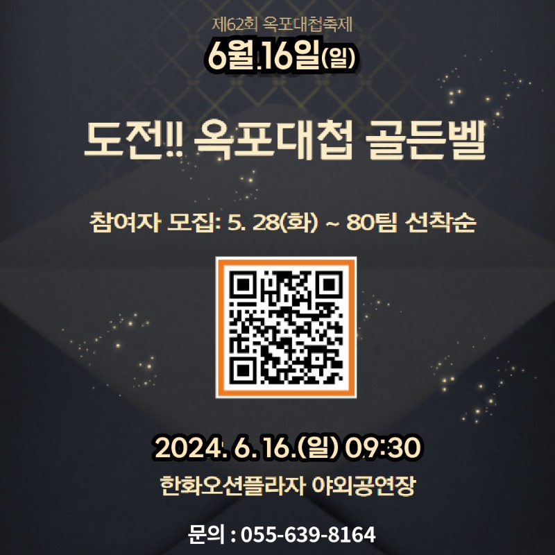 시민과 함께 만들어가는 ‘제62회 거제옥포대첩축제’가 6월 14일 오후 7시 30분 개막식을 시작으로 16일까지 3일 동안 옥포수변공원 일원에서 개최된다. 2024년 축제의 주제는‘진격(進擊)’이다.