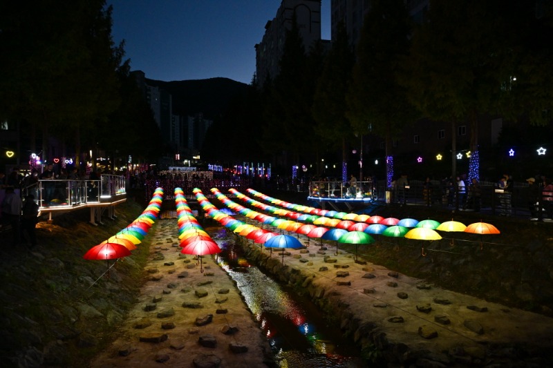 이어 진행된 점등식에서는 카운트다운과 함께 서당골천을 따라 설치된 수많은 조형물이 일제히 불을 밝히며 환상적인 야경을 연출했다.