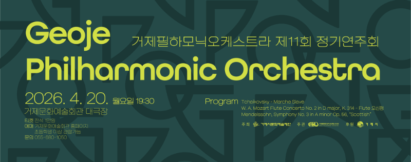 이번 연주회는 2024년 창단 이후 거제시 클래식 음악의 저변 확대를 이끌어온 거제필하모닉오케스트라의 열한 번째 정기 공연으로, 더욱 깊어진 해석과 수준 높은 연주를 선보일 예정이다.