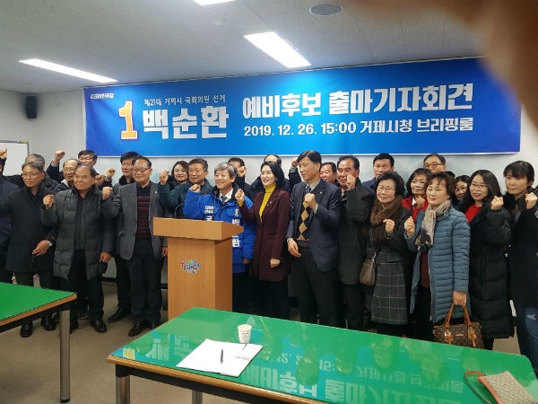 백순환(60.더불어민주당)예비후보는 26일 오후3시 시청 브리핑 룸에서 기자회견을 갖고 내년 4월15일 실시되는 총선에서 거제 출마를 선언했다.