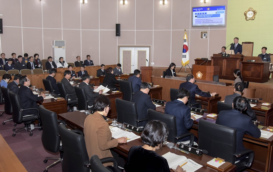 옥영문 의장은 개회사에서 “거가대교 통행료 인하운동과 대우조선해양의 올바른 매각에 시민들의 관심과 적극 동참을 바란다. 새해에도 시민 한 분, 한 분의 삶이 나아지도록 우리 의회는 더욱 최선을 다하겠다”고 밝혔다.
