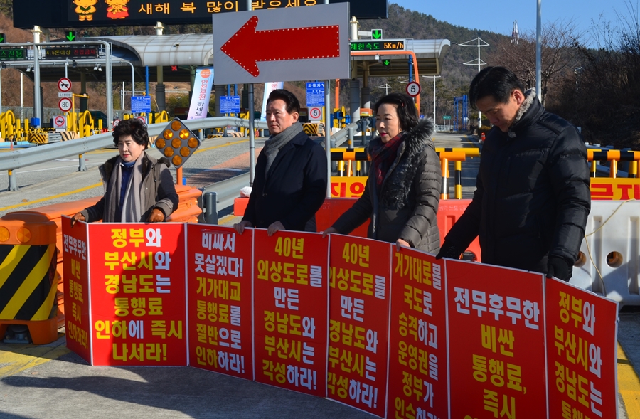 김한표 “거가대교 통행료 낮춰달라” 통행료 인하 촉구 시위