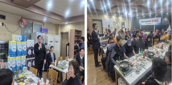 전기풍 경남도의원이 거제시연안통발협회 정기총회에 참석해 인사말을 하고 있다.