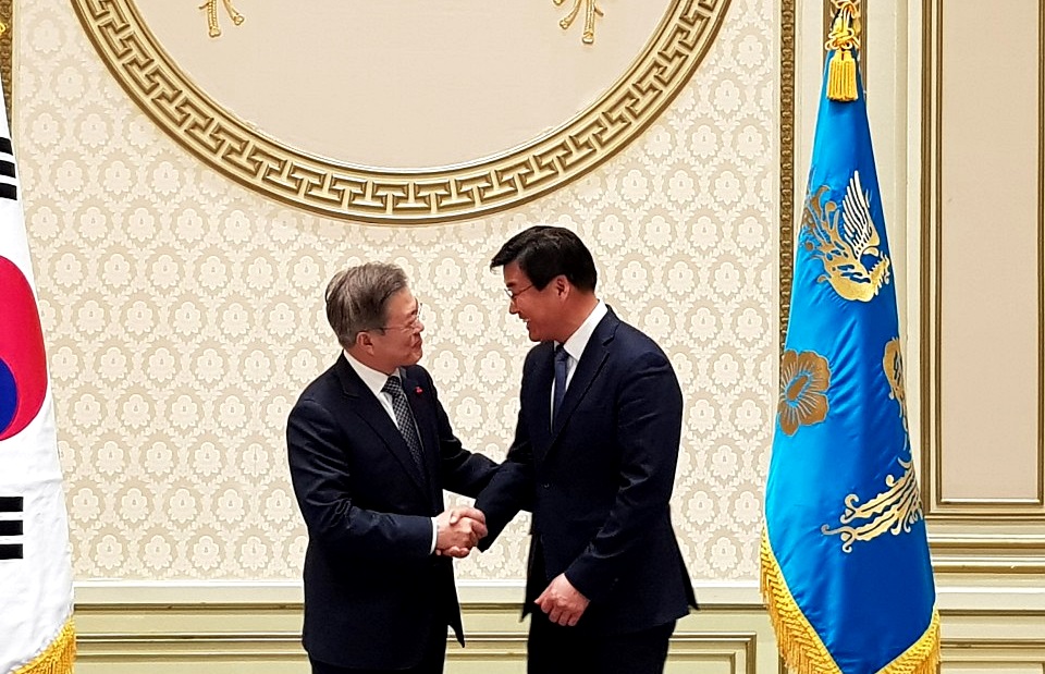 문상모 더불어민주당 거제시 지역위원장은 지난 24일 전국 지역위원장 워크샵에 참석하고 25일 오전 청와대를 방문해 문재인 대통령을 만나 ‘거가대교 통행료인하’ 문제를 직접 건의했다.