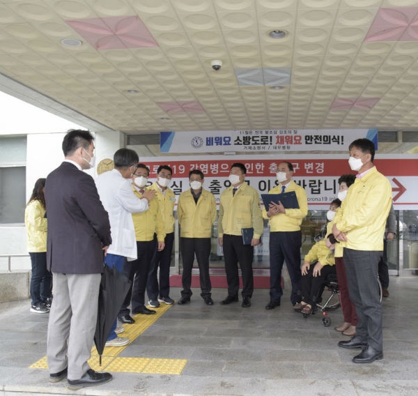 거제시의회 행정복지위원회(위원장 전기풍) 소속 의원들은 허동식 부시장과 함께 지난 10일 관내 코로나19 선별진료소가 설치된 백병원, 대우병원, 맑은샘병원을 차례로 방문해 최일선에서 코로나19 확산방지를 위해 애쓰고 있는 의료진들을 격려하고 선별진료소 운영에 따른 애로사항을 청취했다.