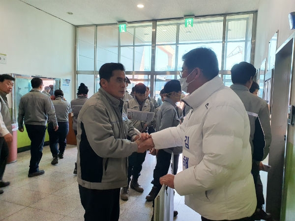 김 후보는 18일 오전 11시 대우조선 협력업체 사무실을 방문, 김돌평 협의회 회장 등 임원진을 만나 대우조선 불공정 매각 시 발생할 대우조선 협력업체의 운명에 대해 의견을 나누고 앞으로 대응책을 의논했다.