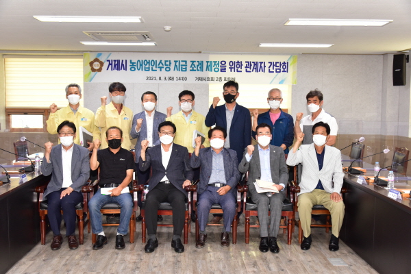 거제시의회 박형국 의원과 김동수 의원은 지난 3일 거제시의회 회의실에서 농·어·임업 관련 단체장 및 기관장, 농업정책과장 등 관계공무원 20여명이 참석한 가운데 「거제시 농어업인수당 지급 조례」제정을 위한 관계자 간담회를 개최했다.