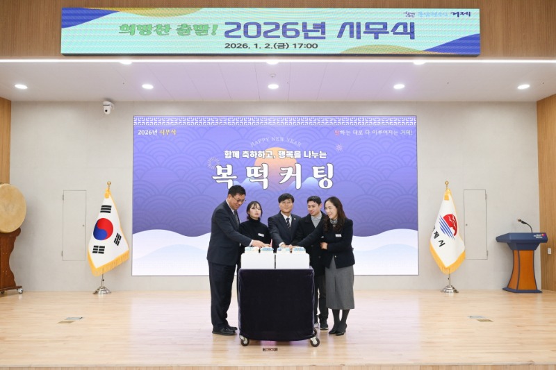 거제시는 2일 시청 대회의실에서 직원 250여 명이 참석한 가운데 2026년 시무식을 열고 본격적인 새해 시정 운영에 들어갔다.