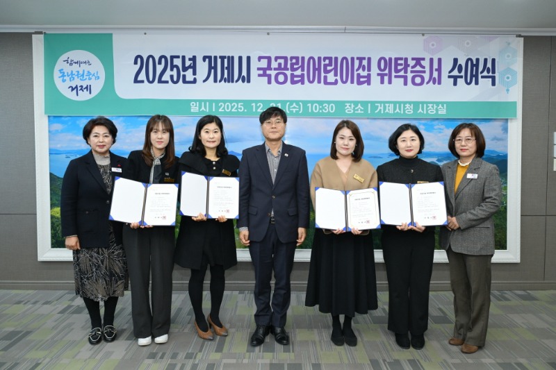 거제시(시장 변광용)는 12월 31일, 시장실에서 국공립어린이집 수탁자로 선정된 어린이집에 위탁계약증서를 수여했다.