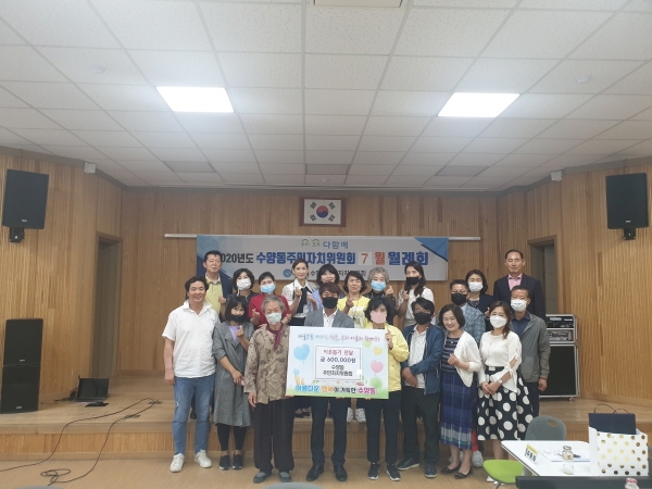 수양동 주민자치위원회(위원장 이민우)는 지난 7일 수양동주민센터(동장 송정희)에 관내 취약계층을 위해 ‘이웃돕기 성금 60만원’을 전달했다.