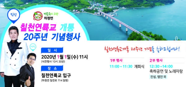 하청면은 오는 2020년 1월 1일 11시 칠천연륙교 입구에서‘칠천연륙교 개통 20주년 기념행사’를 개최한다.