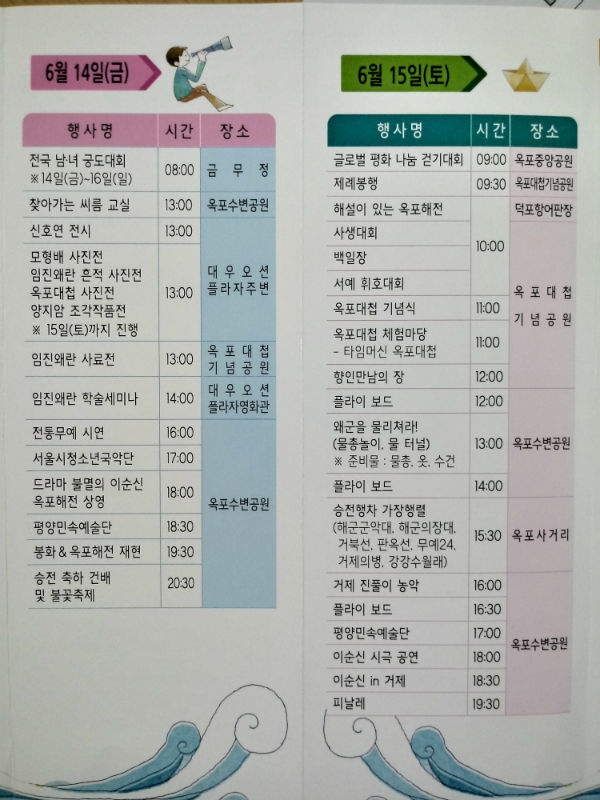 6. 15일 해설이 있는 옥포해전, 옥포해전 승전보고, 승전행차 가장행렬