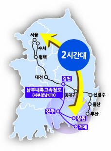 거제시민의 숙원사업이자 문재인 대통령의 지역공약이기도 한 남부내륙철도는 김천에서 거제까지 191.1km를 신설하는 사업으로 추정사업비 5조3000억원을 들여 수도권과 2시간대로 연결하는 대형 국책사업이다.