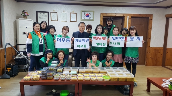 최석호 아주동장은 “날씨가 추워지는 연말에 어려운 이웃들을 위해 정성껏 반찬나눔 봉사를 해주신 새마을부녀회 회원분들께 감사드리며, 나눔문화 정착과 지역공동체 의식 확산을 위해 지속적으로 노력하겠다”고 말했다.