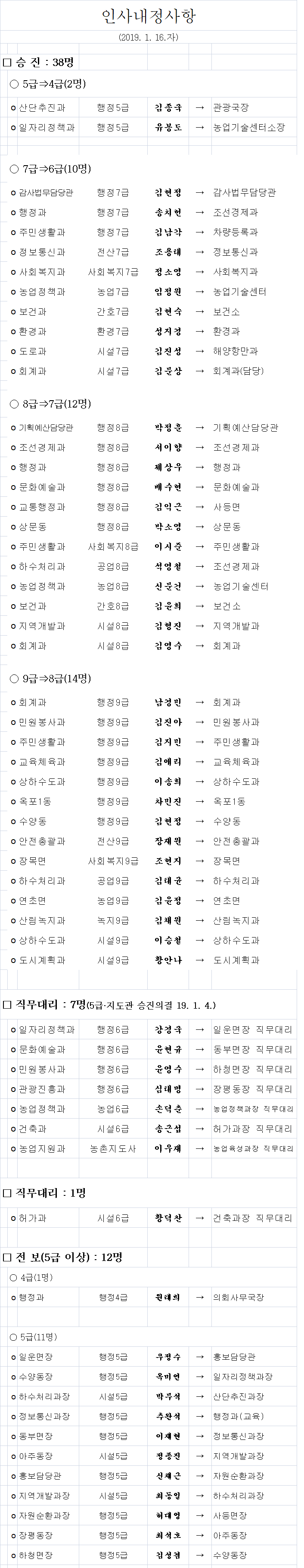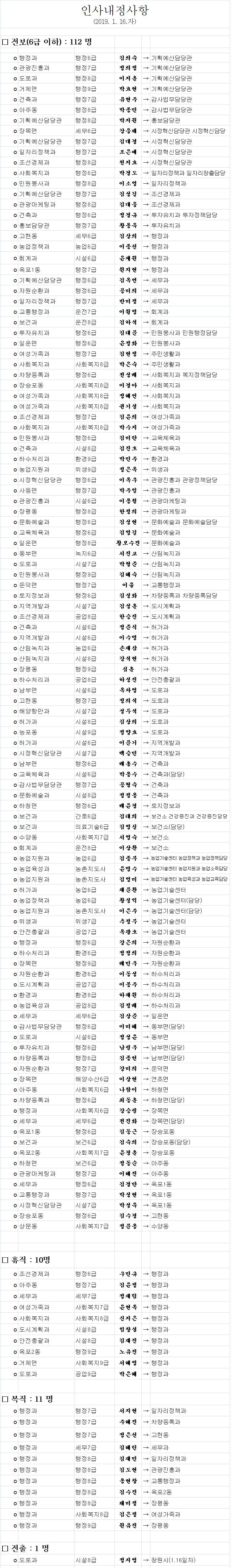 거제시, 2019년 상반기 정기인사 단행