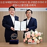지난24일 한화오션 권혁웅 대표이사(오른쪽)와 한국컴플라이언스인증원 이원기 원장이 참석한 가운데 장교동에 위치한 한화빌딩에서 ‘ISO 37001, 37301’ 인증서 수여 후 기념…