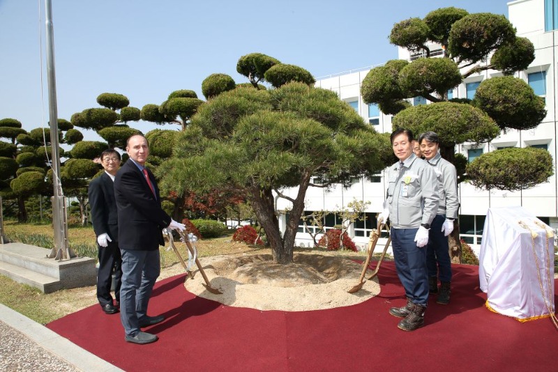 대우조선해양에서 열린 명판 제막식과 기념 식수 행사는 회사가 어려울 때마다 손을 내밀어준 故 존 안젤리쿠시스 회장을 기리며 대우조선해양 전 임직원의 존경심과 고마움을 담아 진행됐다.