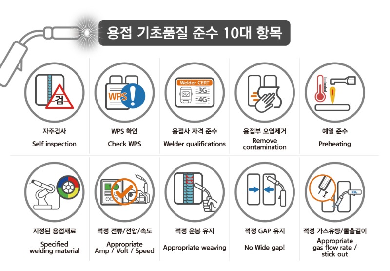 대부분의 용접 결함은 기초적인 부분을 지키지 않아 발생하는 것으로 알려지고 있다. 용접을 하는 사람이라면 누구나 잘 알고 있을 것 같은 기초적인 내용이지만, 실제로 잘 모르거나 알면서도 잘 지키지 않아 용접 결함이 발생하는 것이다.