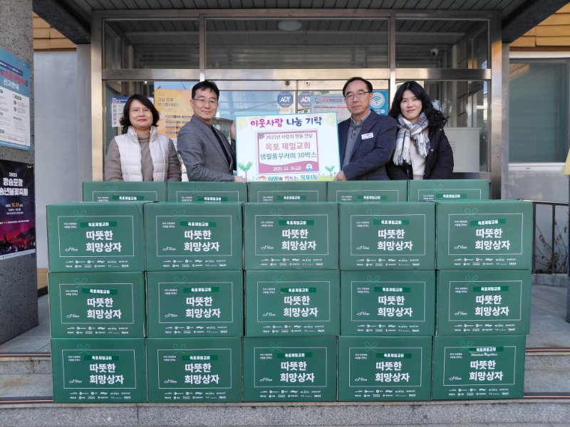 윤영원 옥포1동장은 “지역사회를 위해 따뜻한 나눔을 실천해 주신 옥포제일교회에 깊이 감사드린다”며, “기부해 주신 생필품은 도움이 절실한 이웃들에게 소중히 전달하겠다”고 전했다.