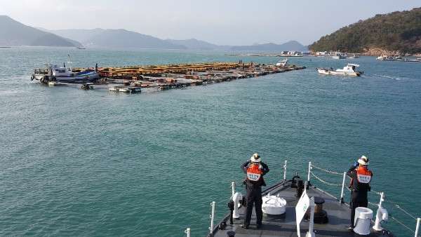 통영해경, 강풍에 떠밀린 표류 가두리 양식장 주인 찾아 돌려줘