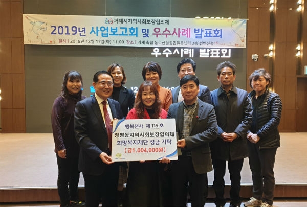 장평동지역사회보장협의체(공동위원장 심태명·이효숙)12171,004,000()거제시희망복지재단(이사장 노철현)에 전달하여 115행복천사가 되었다.