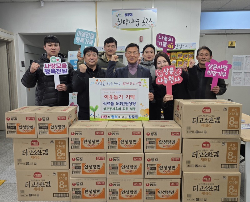 김준오 상문동장은 “명절마다 잊지 않고 이웃을 생각해 주시는 상문동 체육회에 감사드리며 기탁해 주신 물품은 도움이 필요한 가정에 정성껏 전달하겠다”고 전했다.