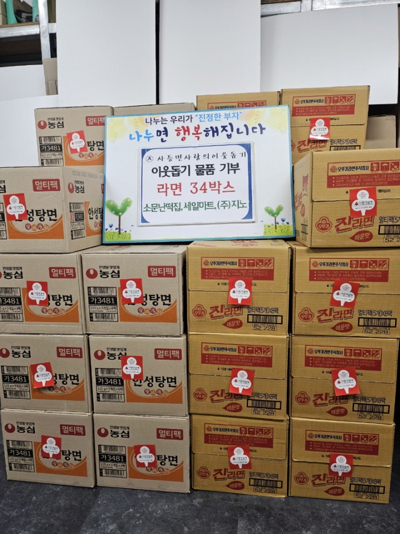 관련사진(소문난떡집, 세일마트, (주)지노, 사등면에 라면 34박스 전달로 따뜻한 이웃사랑 실천).jpg