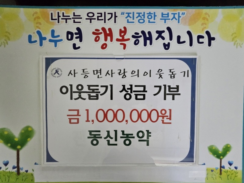동신농약 박일자 대표, 새해 첫날 사등면에 100만원 기부