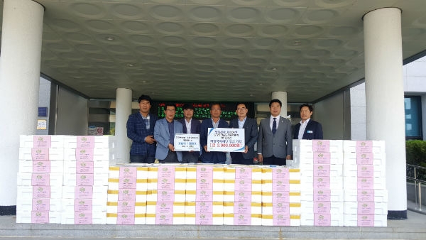 지난 10일 성금 2백만원과 고등어 100박스 기탁
