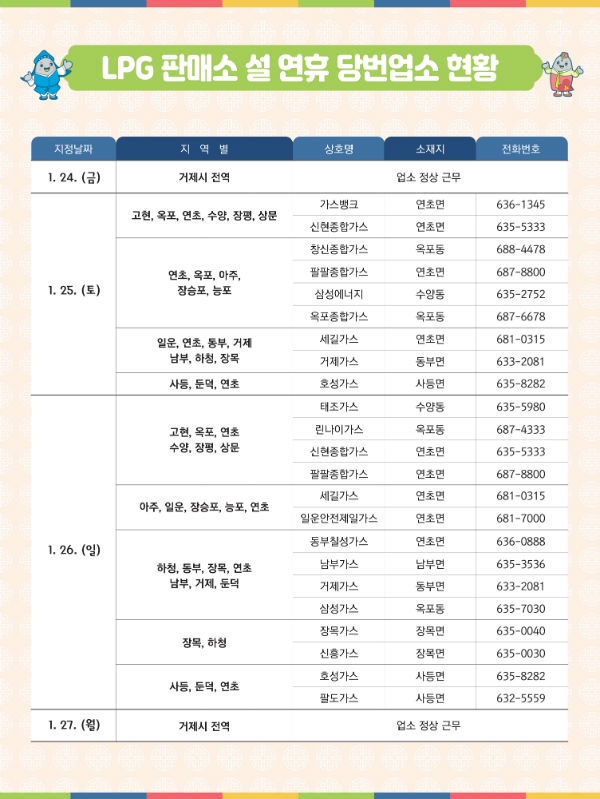 설연휴 문여는 병의원, LPG 충전소