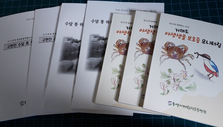 통영거제환경운동연합(상임의장 이종우)은 ‘고현천 수달지도 모니터 자료집’ 2종, ‘거제도야생생물보호종 모니터링’ 자료집을 제작해 학교 및 시민들에게 무료 배포한다.