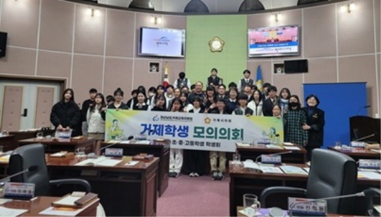 거제교육지원청(교육장 김보상)은 20일 거제시의회 본회의장에서 관내 초․중․고 학생회장 36여명이 참여하는 ‘2025. 거제 지역 학생 모의의회’를 개최했다.