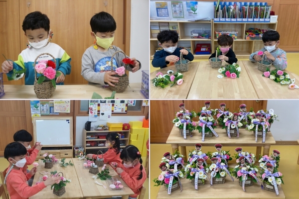 거제용소초등학교병설유치원(원장 황건수)은 5월 3일 어버이날을 앞두고 부모님에 대한 사랑을 표현하고 어버이날의 의미를 되새기기 위한 ‘카네이션 꽃바구니 만들기’ 교육을 실시했다.