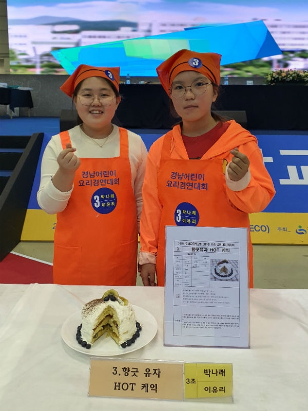 오량초등학교(교장 한순선) 5학년 이유리, 박나래 학생은 지난 14일 2019. 경남교육박람회의 한 프로그램인 어린이 요리경연대회에 참여해 당당히 요리 실력을 뽐냈다.