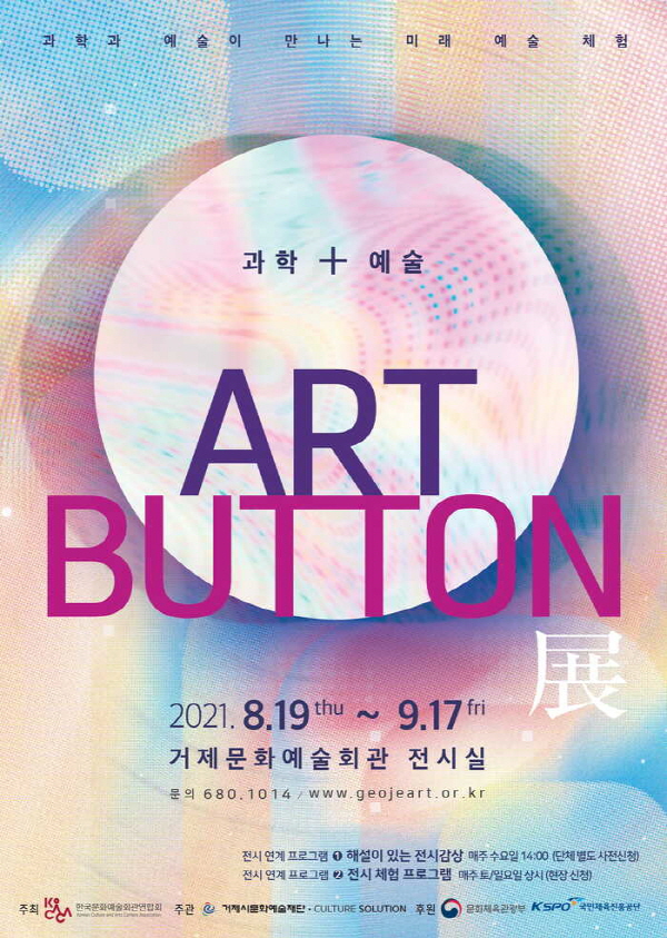 2021년 전시공간 활성화 사업의 일환으로 한국문화예술회관연합회가 주최하고 거제시문화예술재단과 CUTURE COLUTION이 주관하며 문화체육관광부와 국민체육진흥공단이 후원하는 전시 <ART BUTTON>展은 2021년 8월 19일(목)부터 9월 17일(금)까지 거제문화예술회관 전시실에서 개최되며, 매일 오전 10시부터 오후 6시까지 무료로 관람할 수 있다. 전시 영상은 거제문화예술회관 홈페이지와 유튜브 채널 “거제문화예술맛집”에서 추후 공개된다.