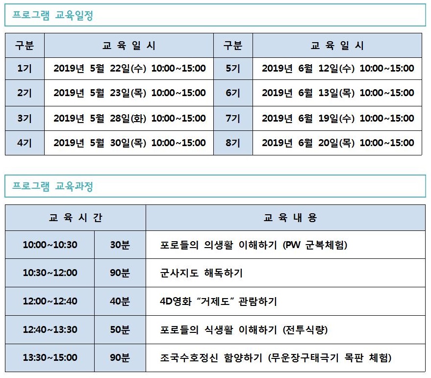 참여방법은 3월 19일 오전 9시부터 포로수용소유적공원 홈페이지(www.pow/or.kr)에서 선착순으로 진행하며, 참가비(차량/식사)는 전액 무료다.