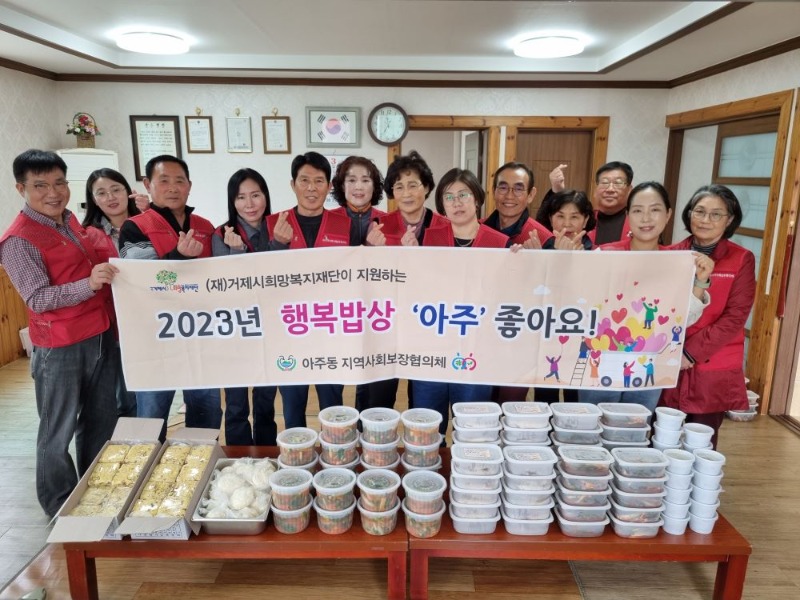 “행복밥상 아주 좋아요”는 아주동 지역 복지 특화사업의 일환으로, 매월 밑반찬을 직접 조리하고 거동이 불편한 독거노인 등 결식의 우려가 있는 식생활 취약계층 20세대를 방문해 밑반찬을 전달하는 사업이다.
