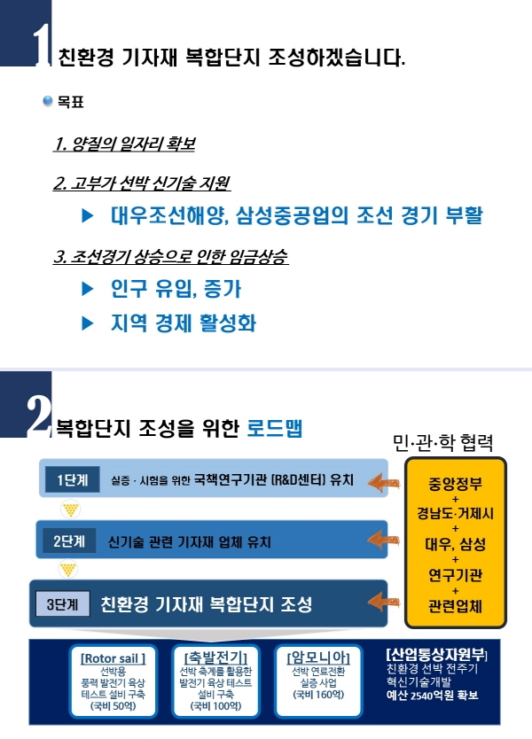 거제시, 양대조선사, 연구기관, 신기술 기자재업체가 하나의 클러스터화 되어 제대로 된 친환경 기자재 복합단지가 조성된다면 그야말로 거제 조선업에 날개를 달게 될 것입니다.