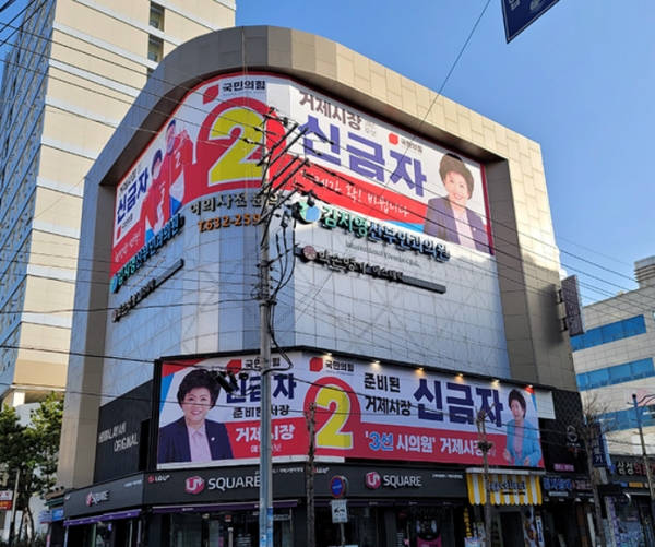 고현동 시내인 현대사 사거리 인근 거제시 서문로 67(2층)에 위치한 선거사무소는 신금자 예비후보가 3선 시의원을 준비했던 공간이다.