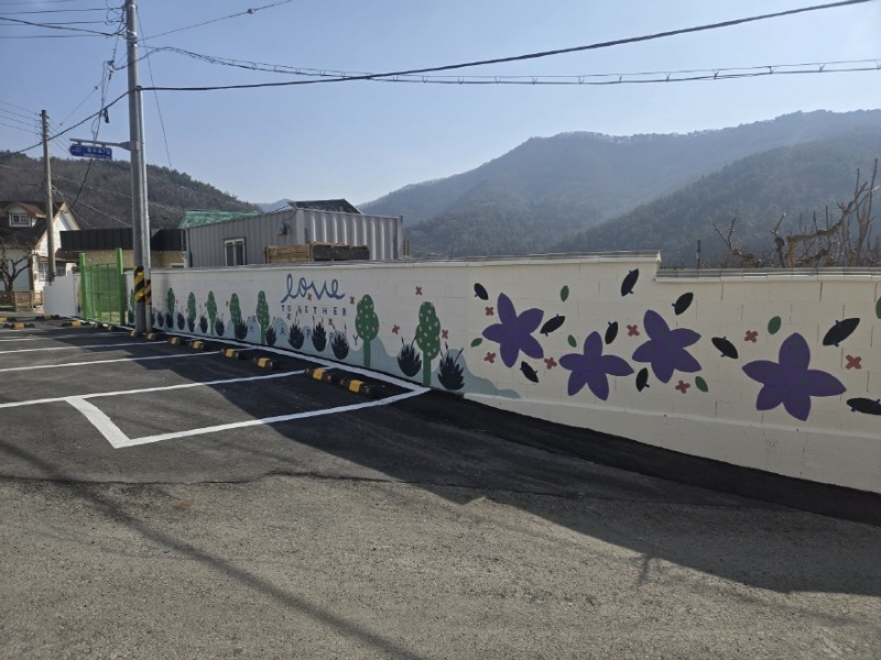 벽화는 마을 공용주차장을 두르고 있는 벽면에 그려졌으며, 마을을 대표하는 가로수인 은행나무와 라벤다 꽃잎으로 장식되었다.