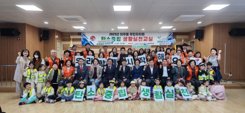 아주동 주민자치회(회장 박미숙)가 2일 아주동주민센터 대회의실에서 아주동민 100여 명과 함께 ‘2025년 탄소중립 생활실천교실’을 성공리에 개최했다.
