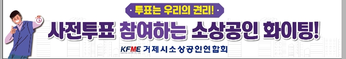 거제시 소상공인연합회(회장 박상표)가 오는 3월 28일(토), 29일(일) 치러지는 거제시장 재선거 사전투표에서 사전투표 참여를 독려하고자 투표율 높이기 캠페인을 벌인다고 25일 밝혔다.