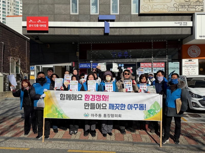 문성오 아주동장은 “추운 날씨에도 불구하고 자원순환 문화 확산을 위해 함께해 주신 통장님들께 감사드린다”며, “앞으로도 지속적인 홍보와 계도를 통해 아주동민의 쾌적한 생활환경 조성에 힘쓰겠다.”는 포부를 밝혔다.