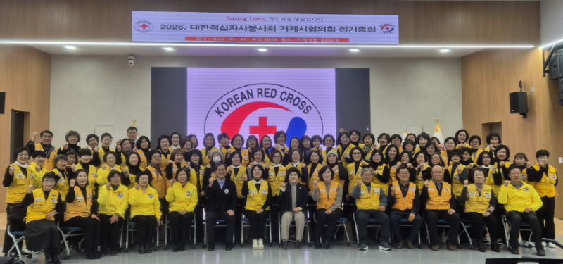 대한적십자사봉사회 거제시협의회(회장 이경미)는 27일 거제시청 대회의실에서 민기식 거제시 부시장, 신금자 거제시의회 의장, 적십자사 경남지사 및 봉사회원 등 100여명이 참석한 가운데 2026년 정기총회를 개최했다.